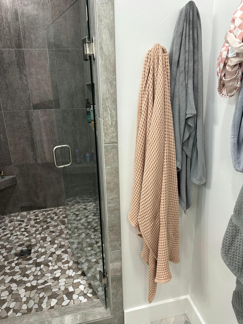 I got the waffle body towel in Sienna! I bought it because I liked the look to be honest. I have never boughten myself nice towels before. Like ever. What I was pleasantly surprised about was how BIG the towel was. Like a little stretch to it and I love how much it can wrap around. Not heavy and breathable which I didn't know I was even missing with my other towels. If you are considering buying the towel- it's a yes!